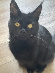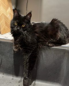 Primrose is our absolutely gorgeous black smoke that is not only polydactyly but very rare double polydactyly, (she is poly on all 4 paws). Prim is WCF and TICA Registered and came to us from Ukraine as a kitten. She absolutely loves the water and crashing in uninvited on a bath or shower with you. Prim is the most vocal cat that we have and loves to chatter and converse with everyone in the house. She is a joy to watch playing in the cat tunnels or watching her lay in ambush for the other cats in the house. She is very social and will let you hold her or carry her all day. She is an absolute sweetheart!